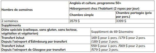 Pour les cours de formation Anglais et culture, programme 50+ incluant l’hébergement en famille