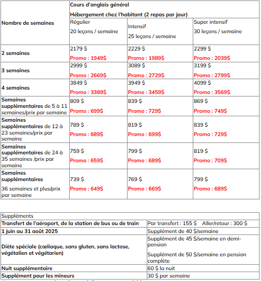 Pour tout séjour en 2026 obtenez 25% de rabais sur les cours (Voir tarif promo)